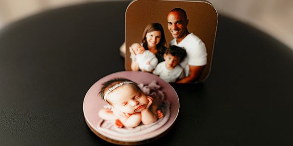 We offer several sizes and shapes for these one-of-a-kind magnets. Magnets are great for clients' gifts or for your clients to gift. These magnets are made from 1/4-inch Maple wood with a finish on one side. We print your photo, mount it to wood, and cut it with our 400-watt laser machine, to create the shape and dark edges you know and love from us.
